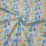 Prinsessor från Disney i en bomullspoplin (=tätvävd). Gör sig lika bra i klänningen, som i babynestet, som i skjortan, som i kjolen, som i gardinen, som i örngottet, som i, ja, du förstår, den passar till lite utav varje.