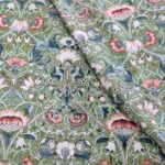 Klassiskt blommönster som för tankarna till Morris och afternoon tea med sina harmoniska färgställningar. En lite kraftigare väv, som lämpar sig till kuddar, gardiner, dukar, klä om stolsdynor, kassar, väskor etc.