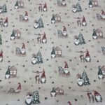 Dags att fixa till hemmet inför jul. Tomtar tryckta på en halvkraftig väv, lämplig till kuddar, gardiner, dukar, pyssel eller varför inte rentav till att klä in dina mest spektakulära klappar i tyg.