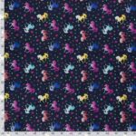 Ganska så perfekt jack-/överdragsbyxtyg för dig som inte riktigt kan få nog av hästar och regnbågsfärger. Relativt mjukt och följsamt material bestående av 2 lager. Innerst kommer den värmande fleecen och ytterst kommer en tålig polyesterväv. Den är i princip helt vindtät men inte helt och hållet vattentät. Tyget andas bra och torkar på ett kick, vilket gör detta till ett material för dig som vill vara ute (och leka mycket).